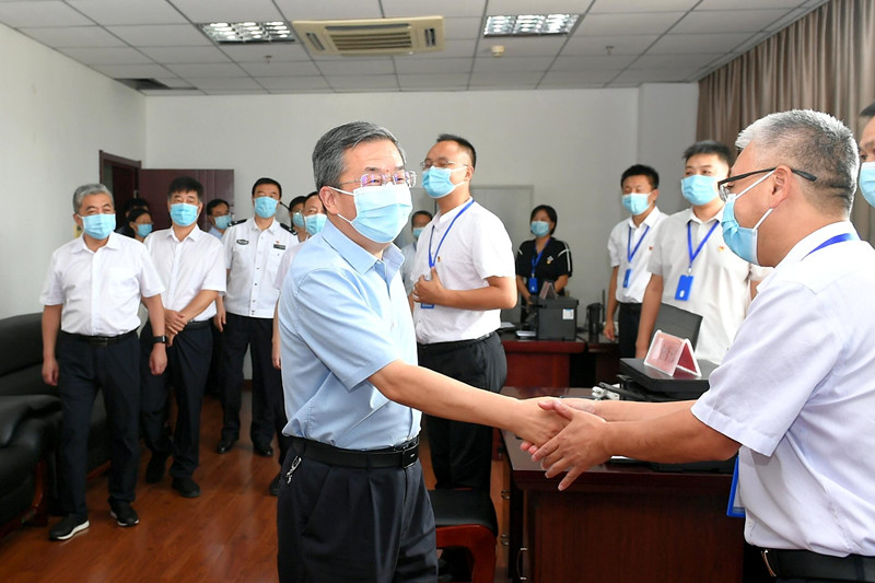 张雷明首先来到市疫情防控指挥部调研,察看“一办五部”集中办公情况,观看多点多渠道监测预警平台运行演示,并与大家座谈交流,听取我市疫情防控工作汇报,了解信息平台建设、风险研判预警、健康监测管理等措施落实情况,向防疫工作人员表示慰问和感谢。随后,张雷明来到蓝湾新城小区、平顶山学院,认真察看基层社区返乡报备、风险排查管控、高校开学准备等情况。